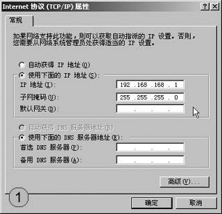 在配置IEEE 802.11b無線網絡時,最為關鍵的步驟便是對無線路由器進行設置。每臺無線路由器都有自身固定的IP地址,我們也正是通過對這一IP地址訪問來配置無線路由器的各項參數。以AboveCable的1100無線路由器為例,其IP地址為192.168.168.230,當然,不同品牌型號的無線路由器的IP地址不盡相同,因此大家需要參閱廠商的技術資料。為了能夠訪問無線路由器的IP地址,我們必須使與之連接的網卡處于同一IP網段,在此例中便是將網卡IP指定為192.168.168.1(192.168.168.XXX都可以)(圖1)。