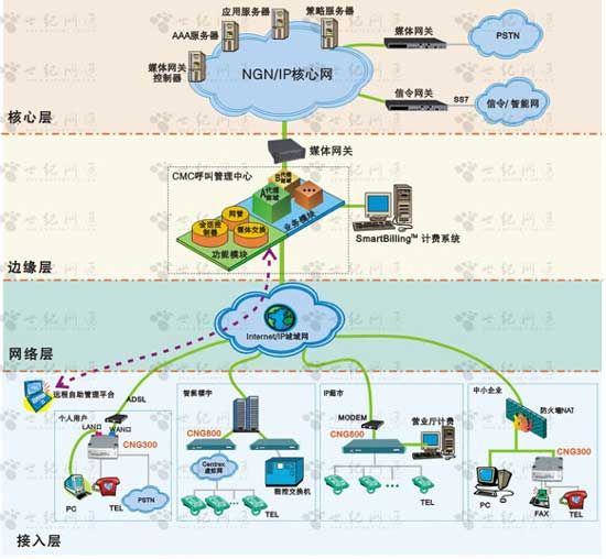 實現(xiàn)無線VoIP另一種方案就是基于軟件的網(wǎng)絡電話,這種方式是直接在互聯(lián)網(wǎng)進行語音數(shù)據(jù)的傳輸,用戶可通過PDA、移動電話、筆記本電腦、PC機以及辦公外設等設備,在提供無線WLAN接入的區(qū)域使用這種軟件網(wǎng)絡電話,從而實現(xiàn)語音通話、文件互傳甚至視頻會議等應用,這種無線VoIP的特點是通訊費用低廉,只要通話的雙方登錄了互聯(lián)網(wǎng),僅需要支付網(wǎng)絡通訊費用,就可以在任何地方進行通訊交流,而且不受時間限制,完全是免費的,這種方案即適合企業(yè)內部的通訊使用,也可以滿足商務用戶的移動通訊需求。