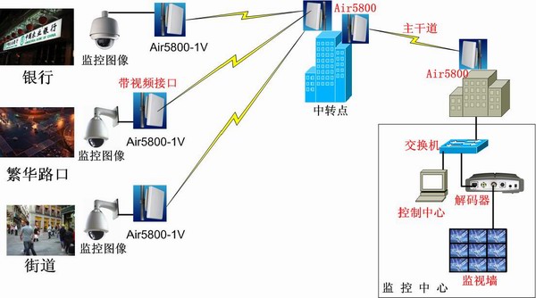 最佳的通訊傳輸網(wǎng)絡(luò):微波無線網(wǎng)絡(luò),解決街道鋪線難度大,傳輸距離遠(yuǎn)等問題。