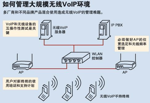 VoIP技術已經(jīng)日益被各企業(yè)所接受,為了進一步解決成本,為企業(yè)用戶提供移動性和方便性,如何在WLAN上部署VoIP(VoWLAN)成為企業(yè)用戶比較關注的話題,然而在傳統(tǒng)無線網(wǎng)絡架構中,每個用戶連接到一個接入點(AP),而每一個接入點服務于一個單元,此時特在VoWLAN應用中,該結構將嚴重影響整個系統(tǒng)的性能和可靠性,比如減慢網(wǎng)絡速度、過大的延遲和抖動、安全性不高等。實際上,成功部署VoWLAN包括三個要素:分析無線電頻率環(huán)境;評估網(wǎng)絡安全;調查無線網(wǎng)絡廠商的語音經(jīng)驗和產(chǎn)品功能。
